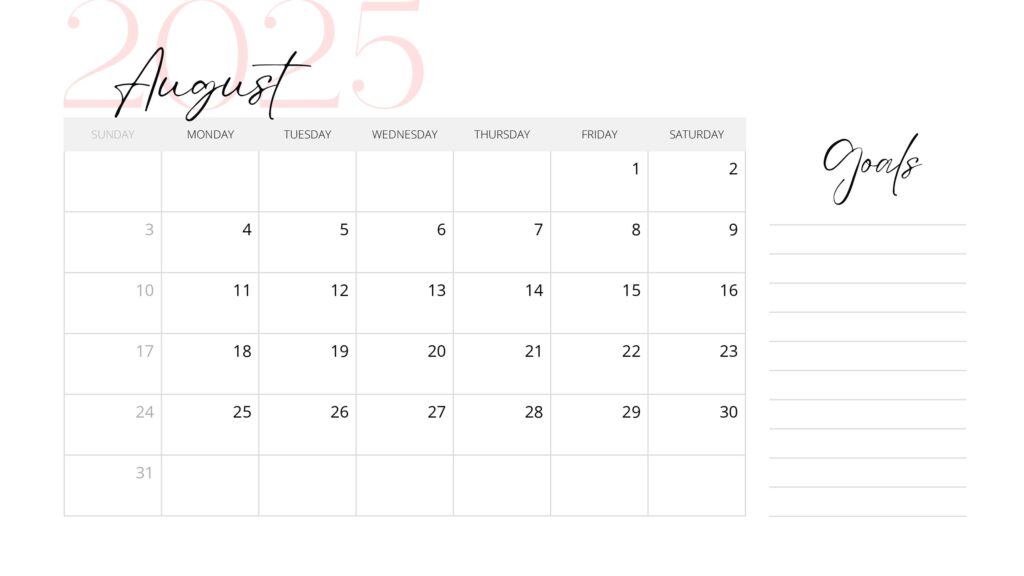 August 2025 Calendar & Weekly Goal setting sheet! Print here